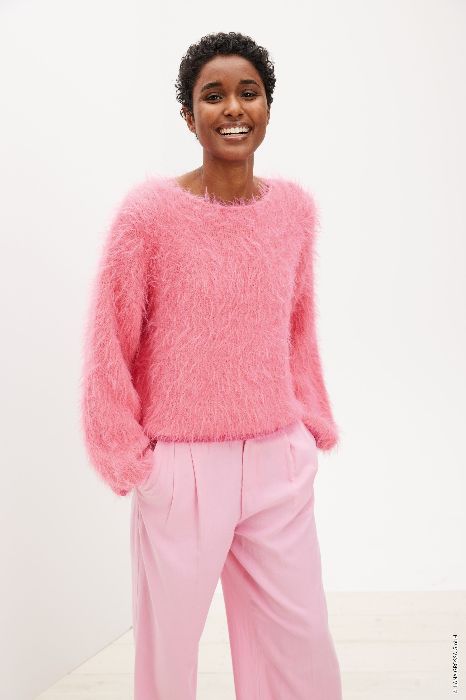 Model 5 Pullover: Garnforbrug 350g Basta og 400g af en anden garn, med strikkefasthed 22m på 10cm.