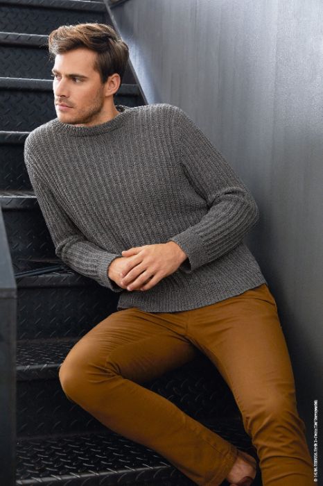 Herresweater strikket i 100% merinould fra Lana Grossa. Sweateren er strikket med et fint struktur mønster.