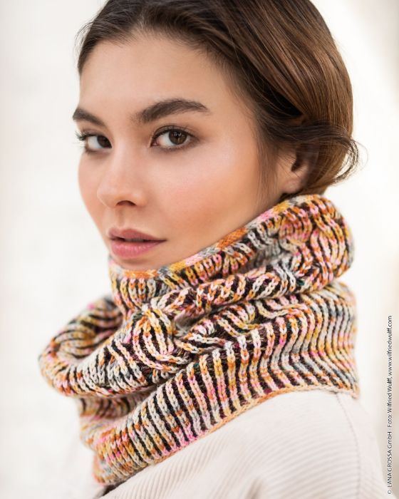 Opskrift Halsrør i 2-farvet halvpatent på dansk sendes som PDF